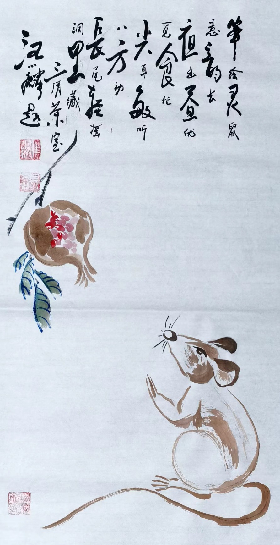 汪小麟,1950年出生于四川射洪一书香门第家,琴棋书画自幼受其父亲影响,书法方面行、草、隶、篆无不精通,绘画方面,工笔、写意、花鸟、人物、草虫、走兽无不涉猎,而且各方面都能达到相当高水平。
