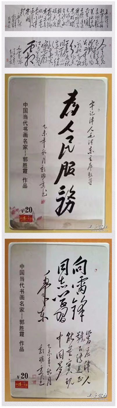 郭胜霞,出生在文化古城卫辉的一个书香门第家庭里,红军后代,自幼随父学习书法。她练习书法从欧体入手,进而临摹二王字帖,书法作品擅长毛体、楷书、行草,尤其对毛主席书法用功弥勤,作品多次入选国家级展览并多次获奖,其中,《长征》获国家级金奖。