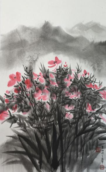 桑格花开 纸本水墨 42×69cm 2017