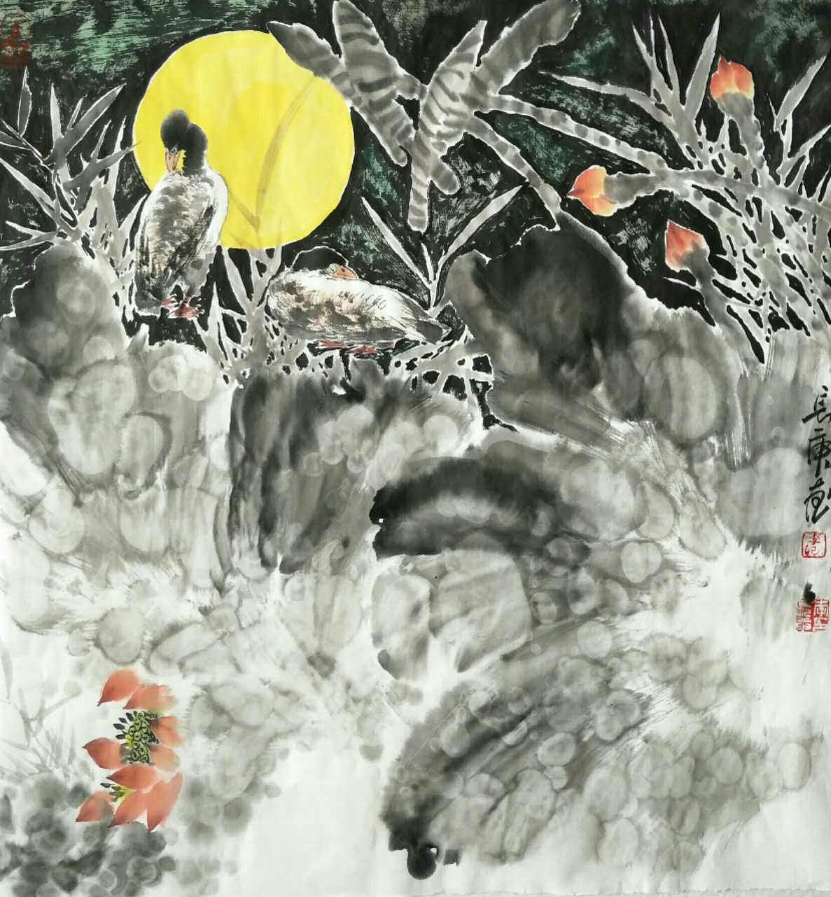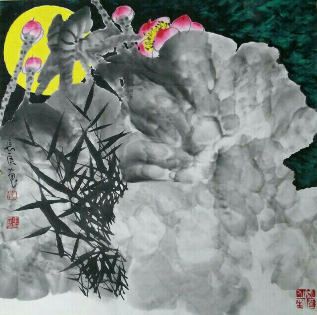 究其法,水和墨大胆交融,尤其对水的驾驭,运用到了极致,形成一种独具特色、自成一家的大写意荷画创作风格,李长庚先生这种创作技法赢得了许多艺术界权威人士的认可,但是,在李长庚自己看来,作为一名画家,仅仅靠雕虫小技涂抹是不够的,这是绘画的初级阶段,在其画面背后蕴藏的精神能量才是他要追求的另一个境界。